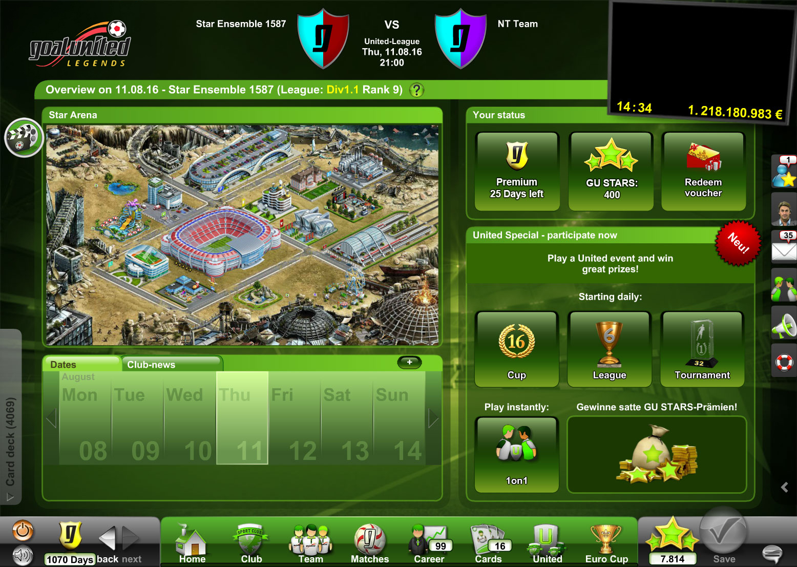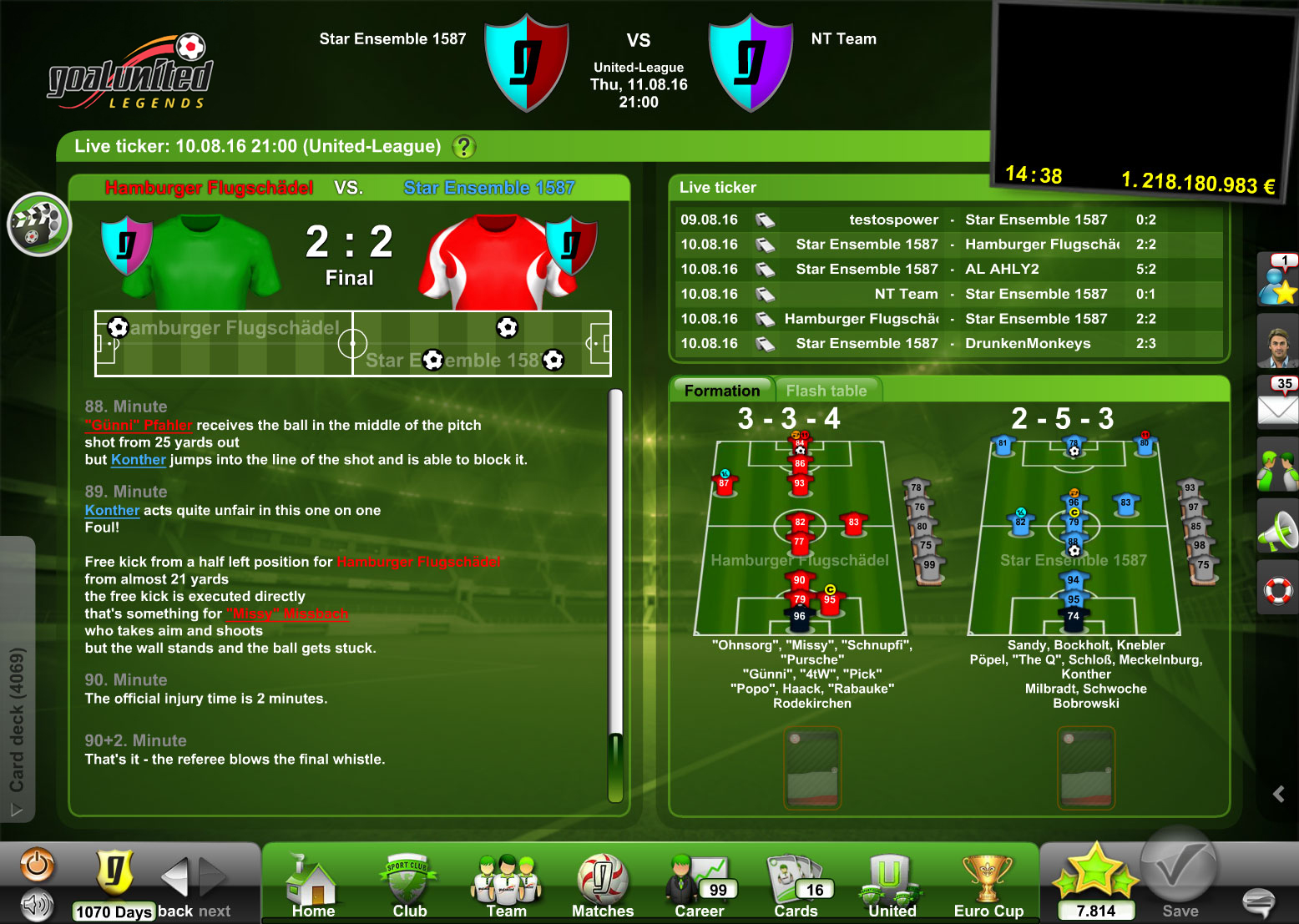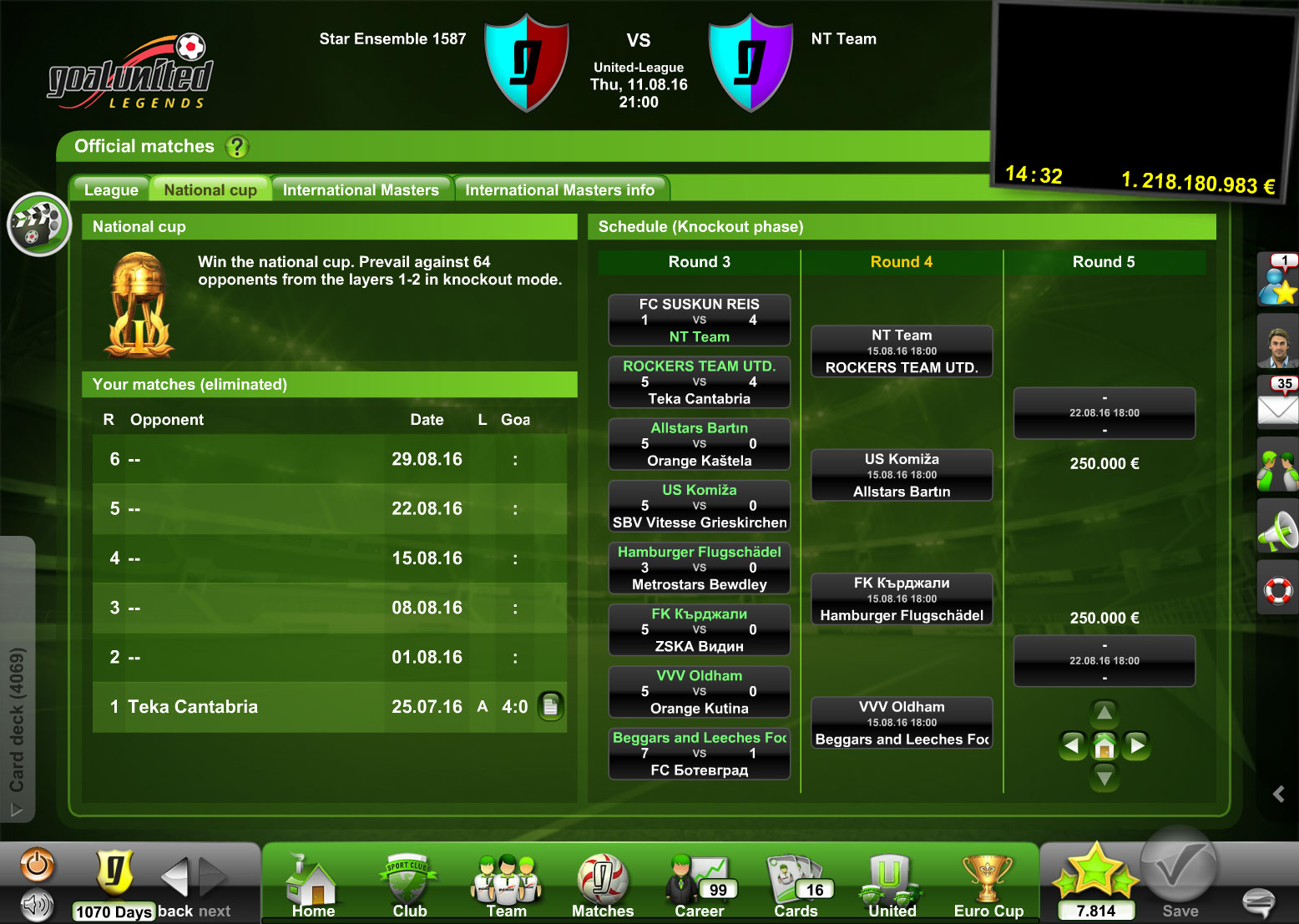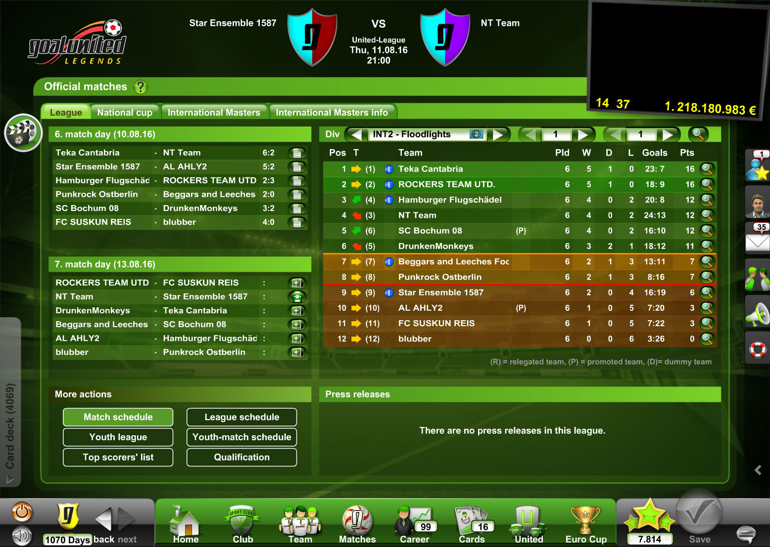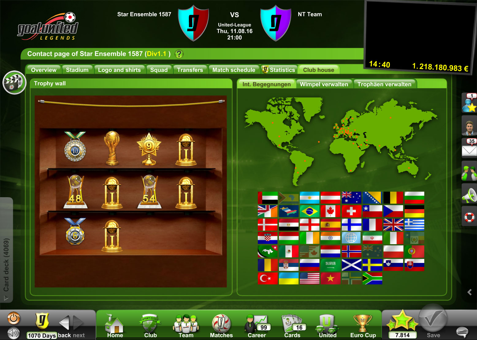 Perhaps your goal-scoring chances may be even higher after purchasing a new player for your squad? Always bear in mind that the other coaches in the community never tire and likewise take advantage of the transfer market: goalunited LEGENDS is more than just soccer.